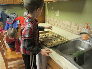 We made some cookies for Daddy to share at work (Side giggle- Noah kept reminding me that today was Thursday and "We still get to do Kid Kitchen on Tuesday, right, Mom?")
