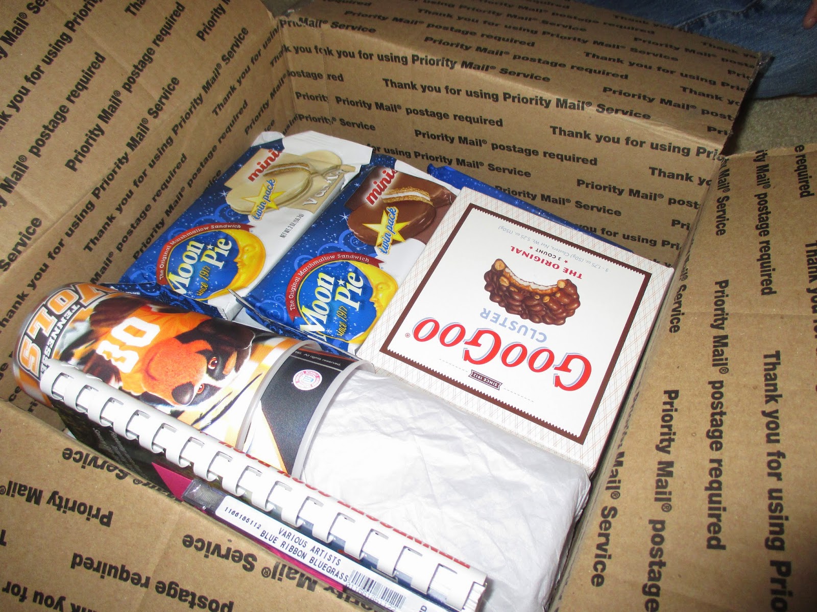 It was FULL of Tennessee goodness! Everything from Jack Daniels grilling sauce (which is perfect since today is my salute to Jack - check back from more on that later), to actual goo goo clusters like from yesterday, to moon pies (which I'm trying my hand at tomorrow), to a TN cookbook, a CD full of bluegrass music (which we jammed out to while we worked on our banjos this morning - more on that later too), to books, cups from the University, a cast iron skillet (and a shout out that Cracker Barrel originated in TN), to a map, to a TON of pamphlets, books, information guides and fun stuff from all the big cities. My kids are over the moon (pies, which we of course had to try out!)!!! And they are all over planning a trip to Tennessee now. Aunt Vickie (with a shout-out to Chelsee who helped) thank you SO much! This was awesome. Noah told me he can't wait to get home from school so he can continue looking through everything. Tennessee became tangible today and you made my job of bringing it to them so easy this week (which is an extra thank you from me because it's a really busy week around here) You'll have to check out all the pictures below to see what I mean. Thank you thank you thank you! I'll be back with more later, so until then...
