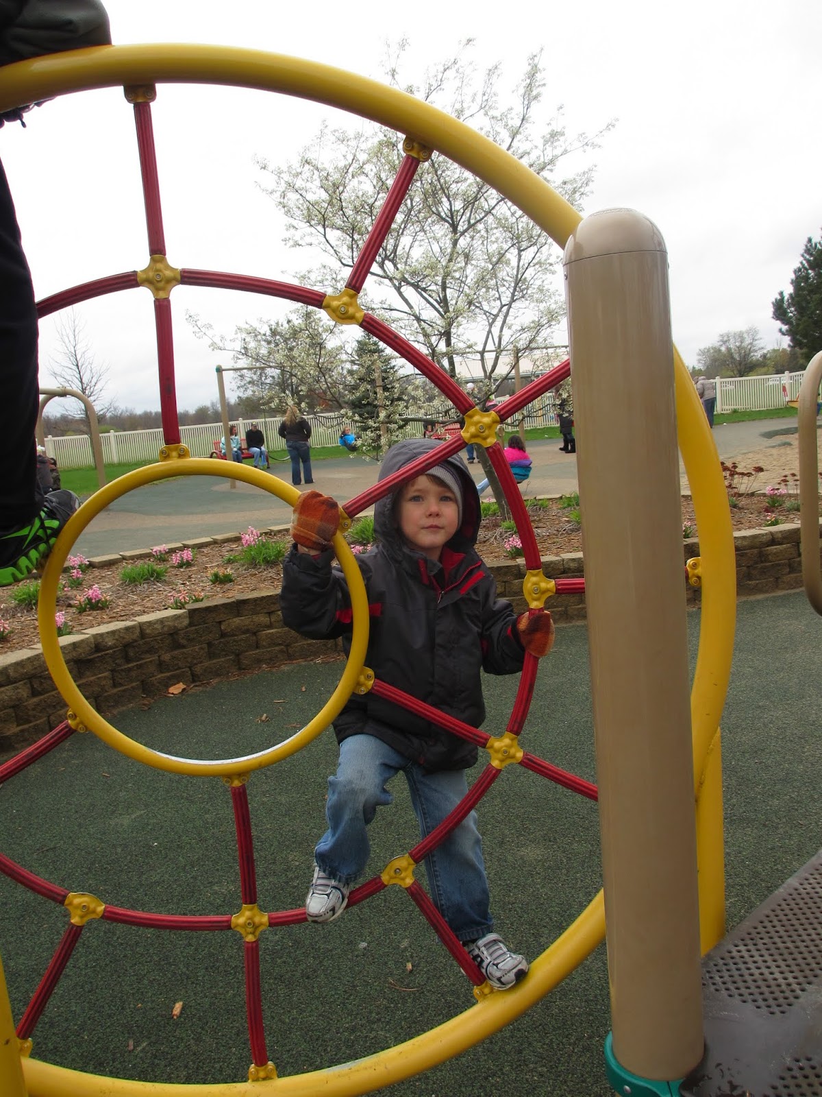 Yesterday was one action packed day with the kids. It started with a delicious breakfast of banana bread french toast, followed by a trip up to Waterford for an Easter Egg Hunt at the Hess-Hathaway park. Then we made it home in time for some wrestling, lunch, and naps. Finally we headed out to Howell for dinner at Arby's (which the kids called "Barbies") and ended the day climbing all over the 5 story tall play structure at