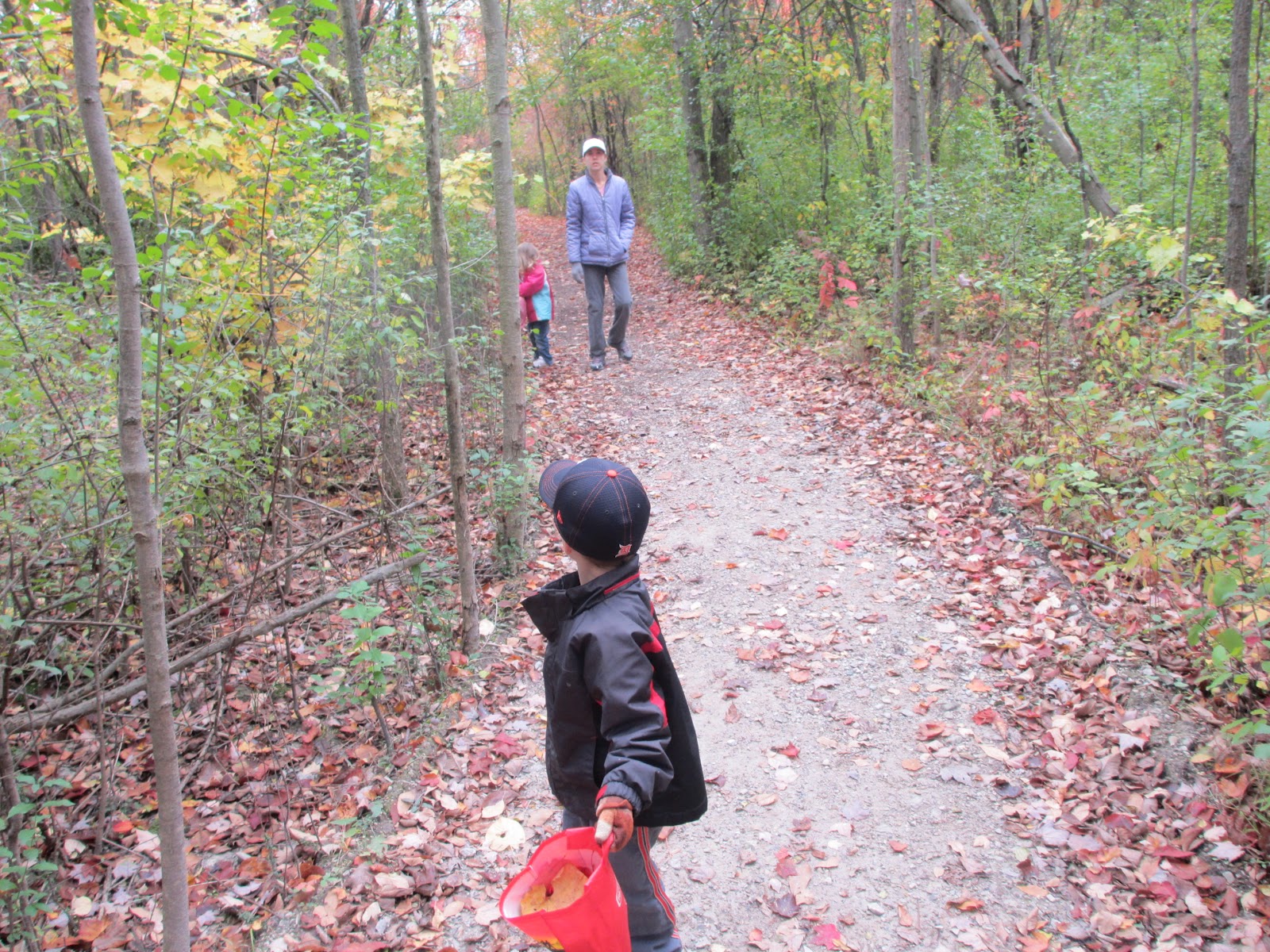 Then we remembered that there was a nature conservatory not too far from the house on Farmington Road that we had been meaning to check out. So we decided we needed to go on a leaf hunt! We'd help the kiddos find tons of fun colored leaves and then later they could make a really cool mural out of their finds.