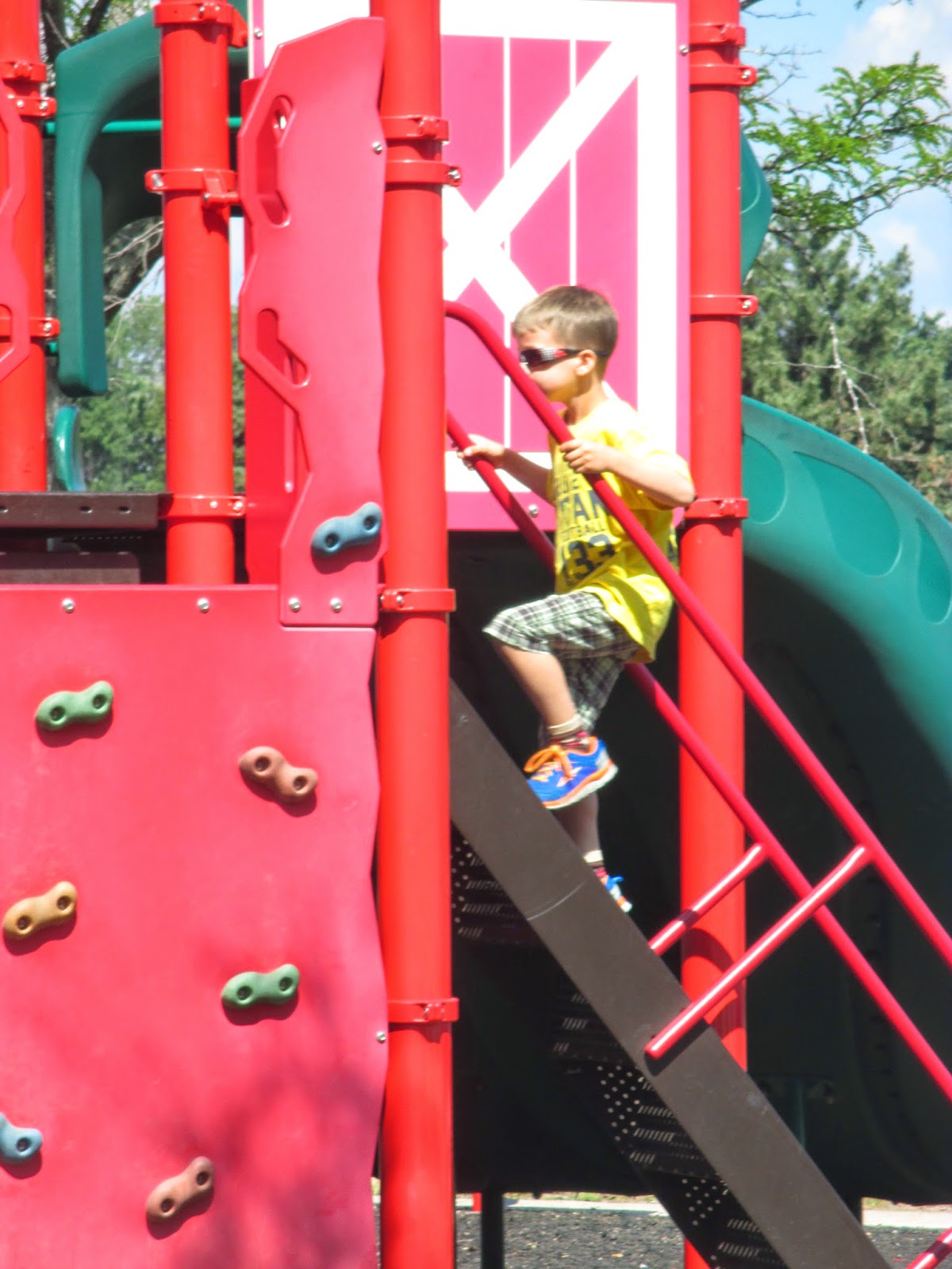 We had a great day filled with a trip to pick up pictures from our trip and Nebraska week so I can get our scrapbook pages caught up, a stop at the library, some great playtime at Inglenook park, a stop at the store so I could get a new pillow (hoping it will help the headaches I've been waking up with lately...), lunch and of course - slurpees! In case you're wondering, Mikayla settled on a combination of watermelon punch and Vernors and Noah went with Blue Raspberry and Vernors.
