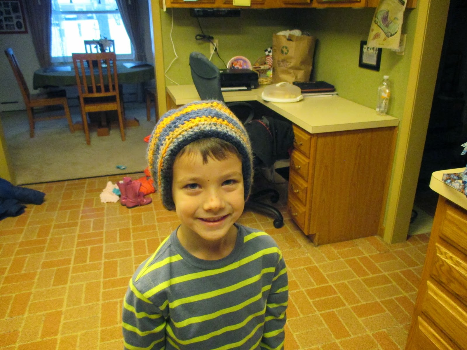 Who loves this kiddo? Hmm, that'd be his Mama who started this hat at 10:30 last night....